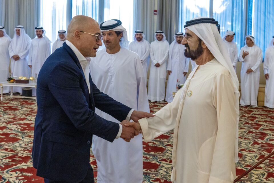 شیخ محمد بن راشد آل مکتوم، نائب صدر اور متحدہ عرب امارات کے وزیر اعظم اور دبئی کے حکمران نے معززین، تاجروں، تاجروں، سرمایہ کاروں، وزراء، سرکاری اور نیم سرکاری محکموں کے اعلیٰ عہدیداروں، اداروں اور اداروں کے ساتھ ساتھ نجی شعبے کے سرمایہ کاروں کے ایک گروپ سے ملاقات کی۔ دبئی کے یونین ہاؤس میں۔