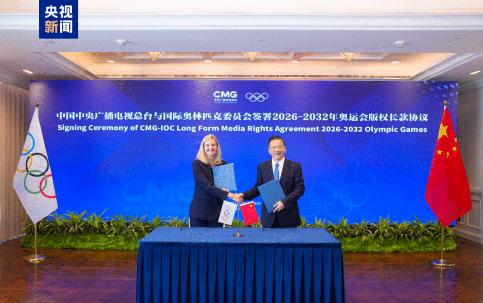 9 نومبر کو، چائنا میڈیا گروپ اور بین الاقوامی اولمپک کمیٹی نے چین کے شہر گوانگ چو میں 2026 سے 2032 تک کے اولمپک کھیلوں سے متعلق طویل مدتی میڈیا رائٹس کے معاہدے پر دستخط کیے۔ سی پی سی کی مرکزی کمیٹی کے محکمہ تشہیر کے نائب سربراہ اور چائنا میڈیا گروپ کے صدر شین ہائی شیونگ اور بین الاقوامی اولمپک کمیٹی کی صدرکرسٹی کوونٹری نے دونوں اطراف کی نمائندگی کرتے ہوئے دستخط کیے اور 2026 کے میلانو-کورٹینا سرمائی اولمپک کھیلوں کے کوریج لوگو کو بھی مشترکہ طور پر جاری کیا ۔ بین الاقوامی اولمپک کمیٹی کے تا حیات اعزازی صدر تھامس باخ نے بھی اس تقریب میں شرکت کی۔