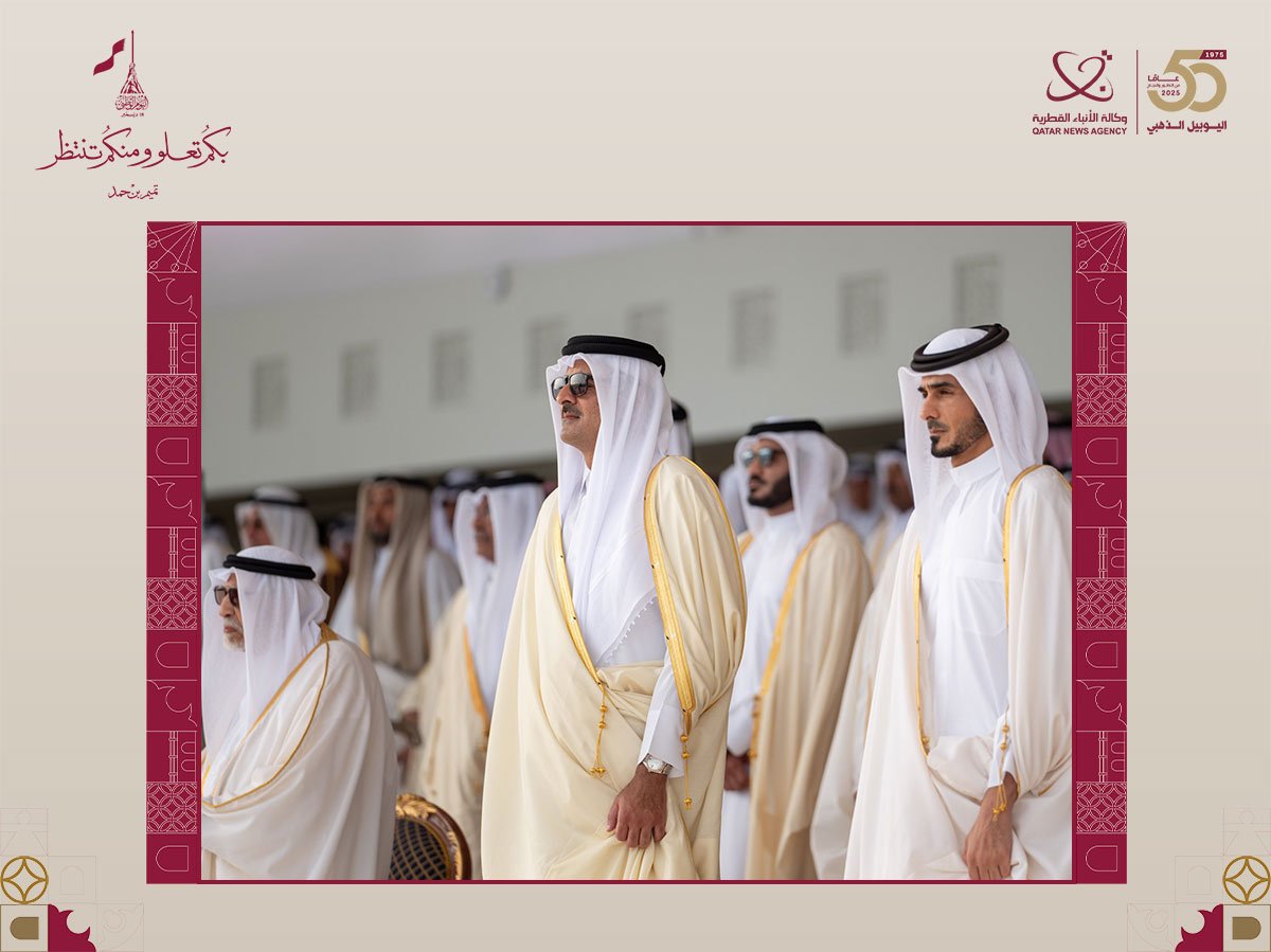 دوحہ، 18 دسمبر /QNA/ مملکت قطر کے امیر عزت مآب شیخ تمیم بن حمد الثانی نے سال 2025 کے لیے قومی دن کی پریڈ کا مشاہدہ کیا، جو آج صبح دوحہ کورنیشے میں ملک کے فوجی اور سیکیورٹی حکام کی وسیع شرکت کے ساتھ منعقد ہوئی۔